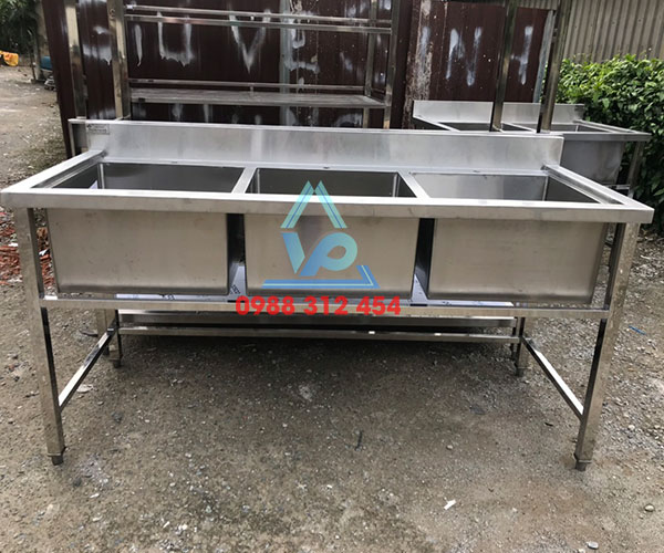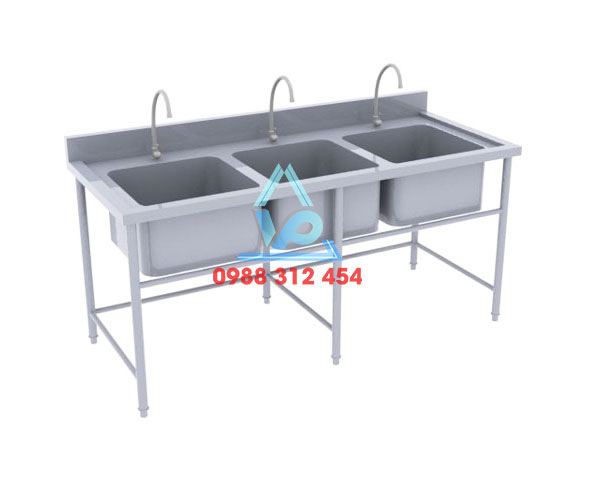 - Thiết kế sản phẩm tương tự như chậu rửa inox đơn, chậu rửa đôi, nhưng với 3 ngăn rửa tiện lợi hơn. Tùy vào công suất nấu của bếp mà quý khách chọn cho mình kích thước và số ngăn rửa phù hợp với mình. Đặc biệt chậu rửa inox 3 hộc thường dùng với bếp căn tin, bếp công nghiệp phục vụ nhiều người thưởng thức món ăn. Và thường được lắp đặt cùng với các thiết bị inox khác như bàn inox, kệ inox công nghiệp, bàn inox công nghiệp,...