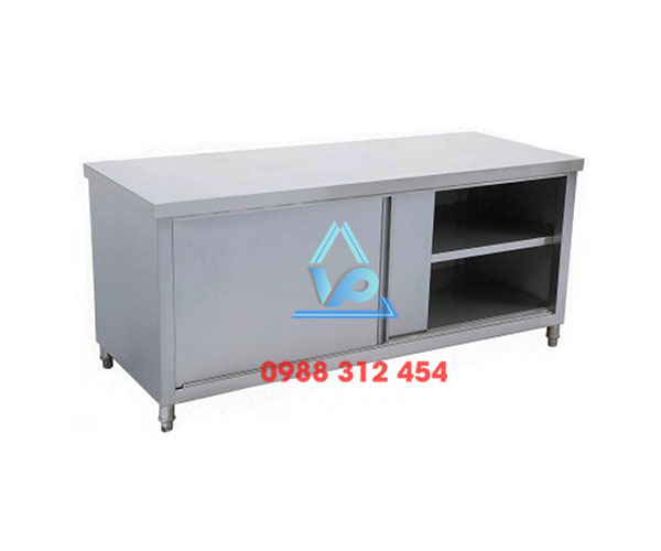 Tại các khu bếp công nghiệp, bếp nhà hàng, bếp tập thể,... trong quá trình sơ chế và chế biến thức ăn để đảm bảo an toàn vệ sinh thực phẩm chúng ta cần có thiết bị tránh những bụi bẩn, ruồi muỗi, dầu mở bám vào thì tủ inox cửa lùa 2 tầng là sự lựa chọn hoàn hảo. Mặt khác tủ inox khu bếp, tủ inox cửa lùa còn là nơi để các thiết bị dụng cụ chế biến thức ăn giúp cho các vật dụng luôn luôn bền đẹp, căn bếp luôn luôn gọn gàng sạch sẽ.