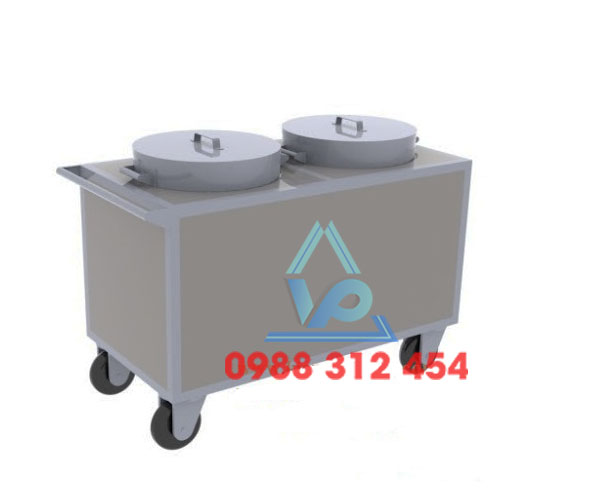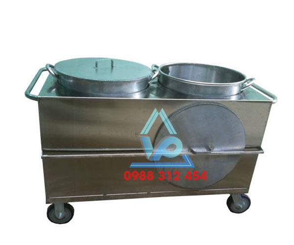- Xe đẩy canh inox được cấu tạo dạng thùng, với lớp ngoài giữ cố định 2 hay 1 nồi canh bên trong.